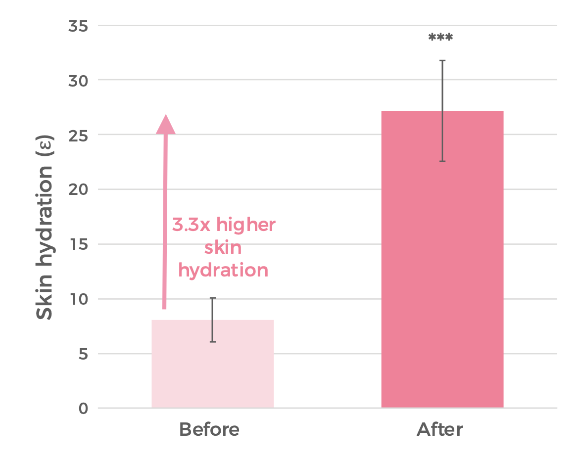 Nuvogen Symphony significantly increased skin hydration by 3.3-fold (p<0.001) at the superficial layer of the skin (stratum corneum) after one time of use, providing immediate hydrating effect to relieve dry skin.1